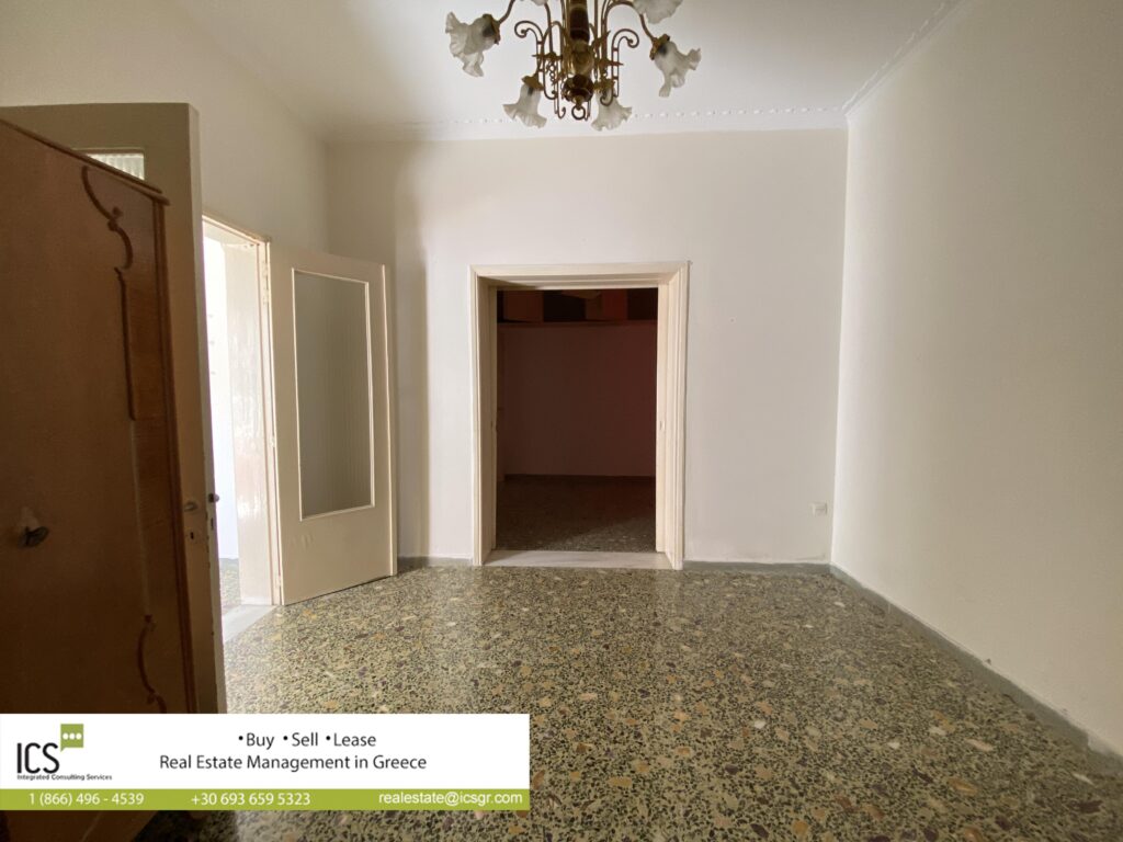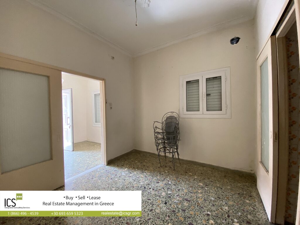 For rent in Kanellopoulou street, in Kiato, ground floor apartment 65.50sqm, built in 1959, consisting of 2 large halls, 2 bedrooms, kitchen and bathroom. The apartment has access to the common yard, is partially renovated, with security door, aluminum frames, double glazing, kitchen in good condition, 5 minutes walk from the beach and all the shops and supermarkets.