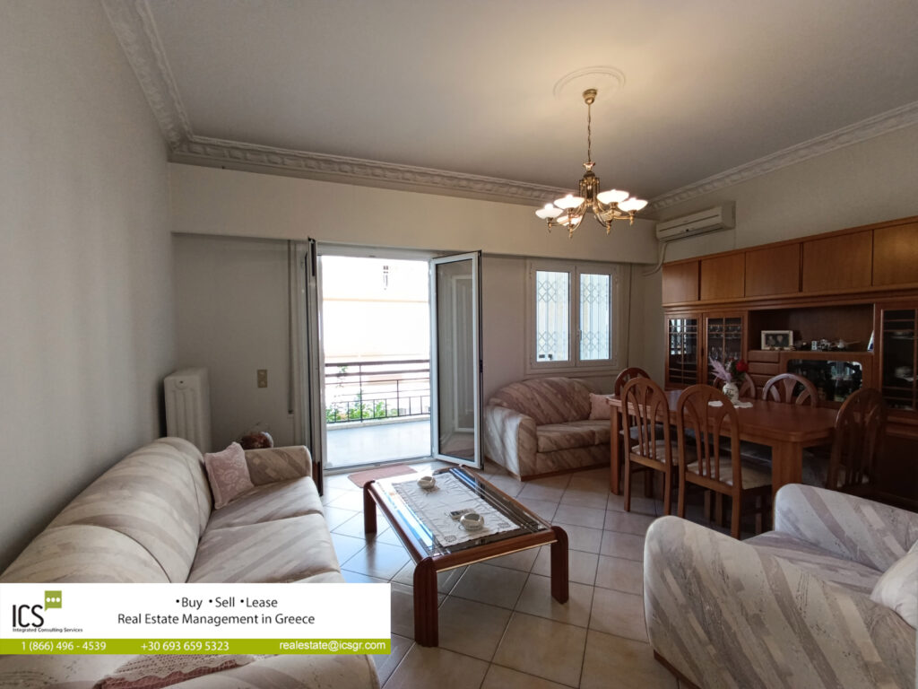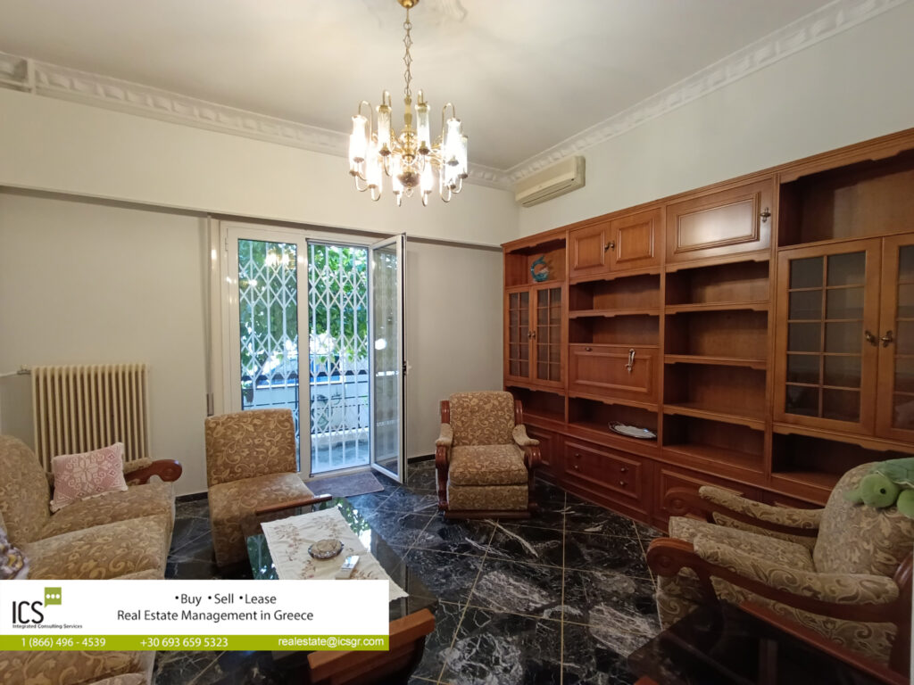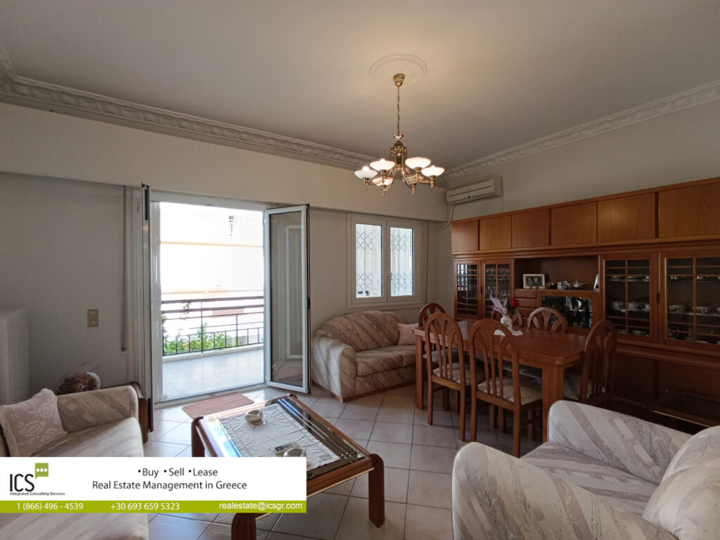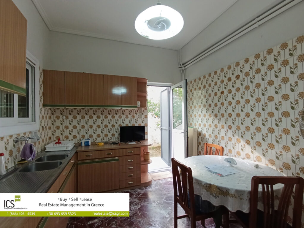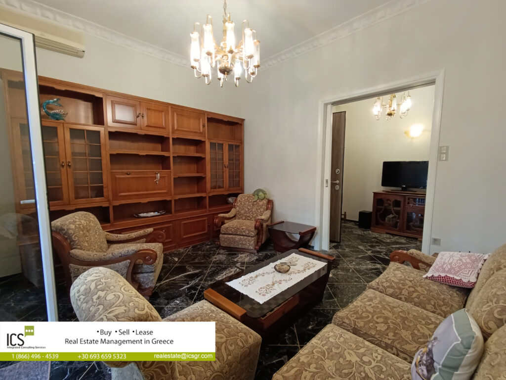 Ground floor apartment of 77.52 sq.m, built in 1972, consisting of a living-dining room, separate kitchen, 2 bedrooms and a bathroom. The apartment has a security door, aluminum frames, screens, solar water heater, autonomous oil heating, marble floors, as well as 3 air conditioners.