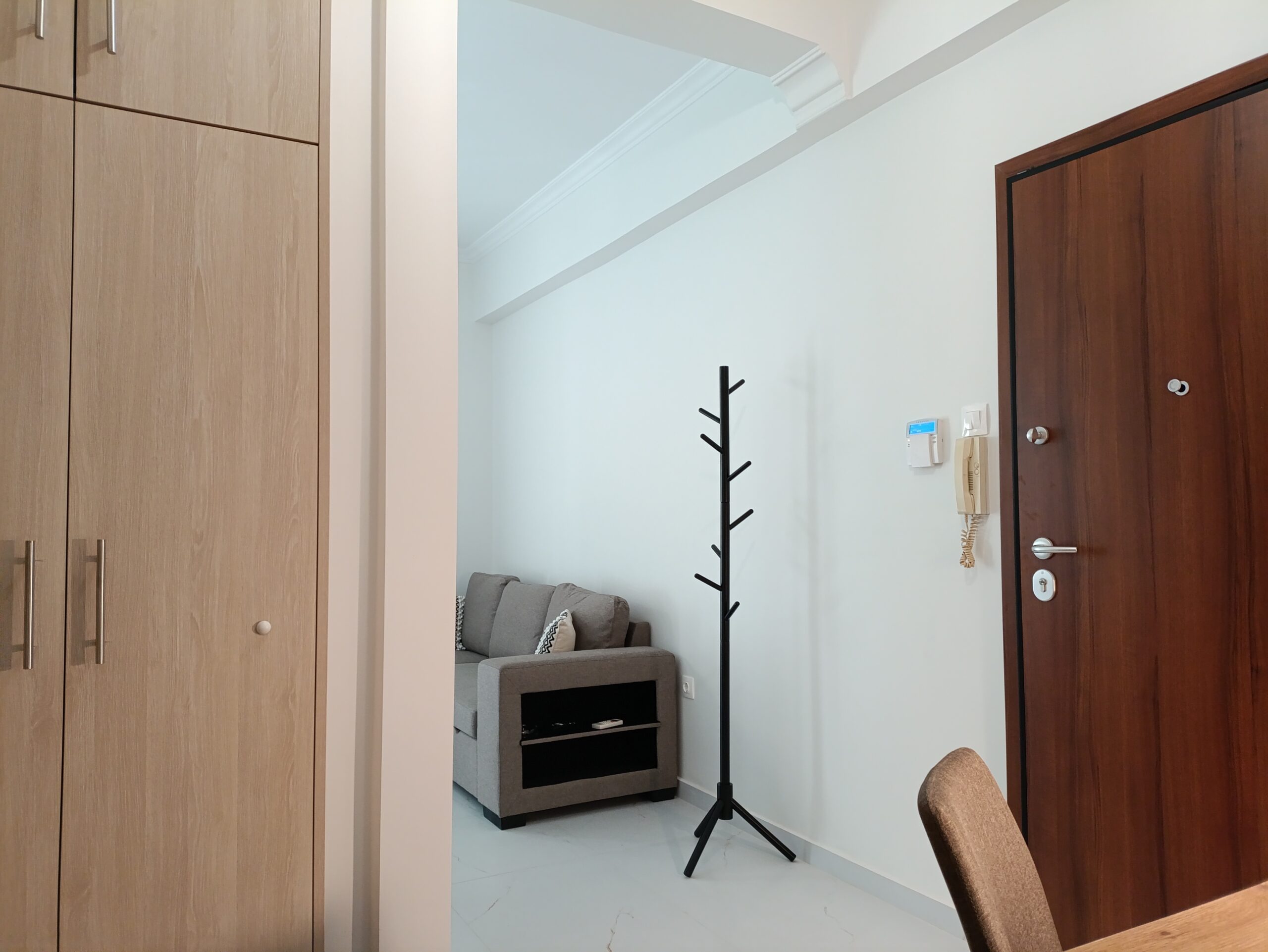 It is located in a very central area of Neos Kosmos, and at the same time in a quiet neighborhood. Close to supermarkets, the Baknana tram station and the Neos Kosmos metro station, with easy access to Syggrou Avenue and Vouliagmenis Avenue. Rent € 600/month, non negotiable.