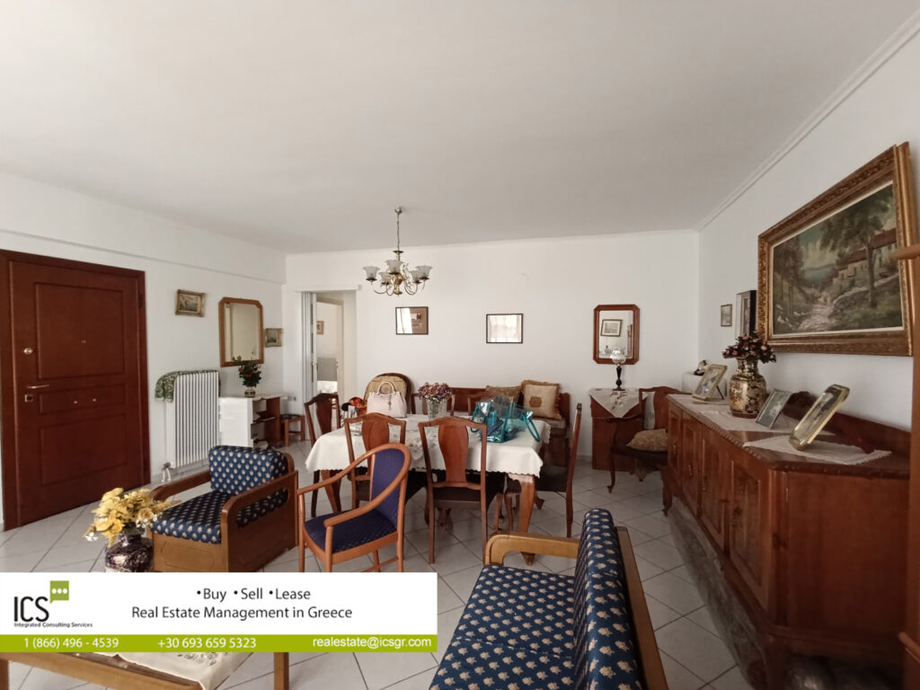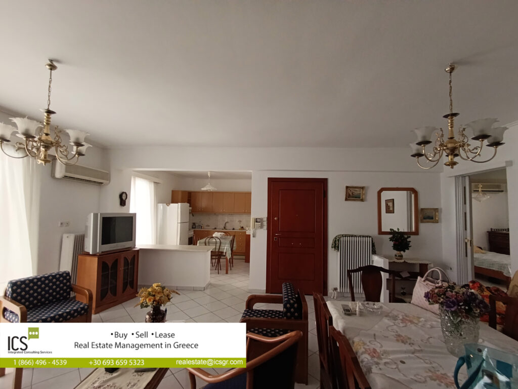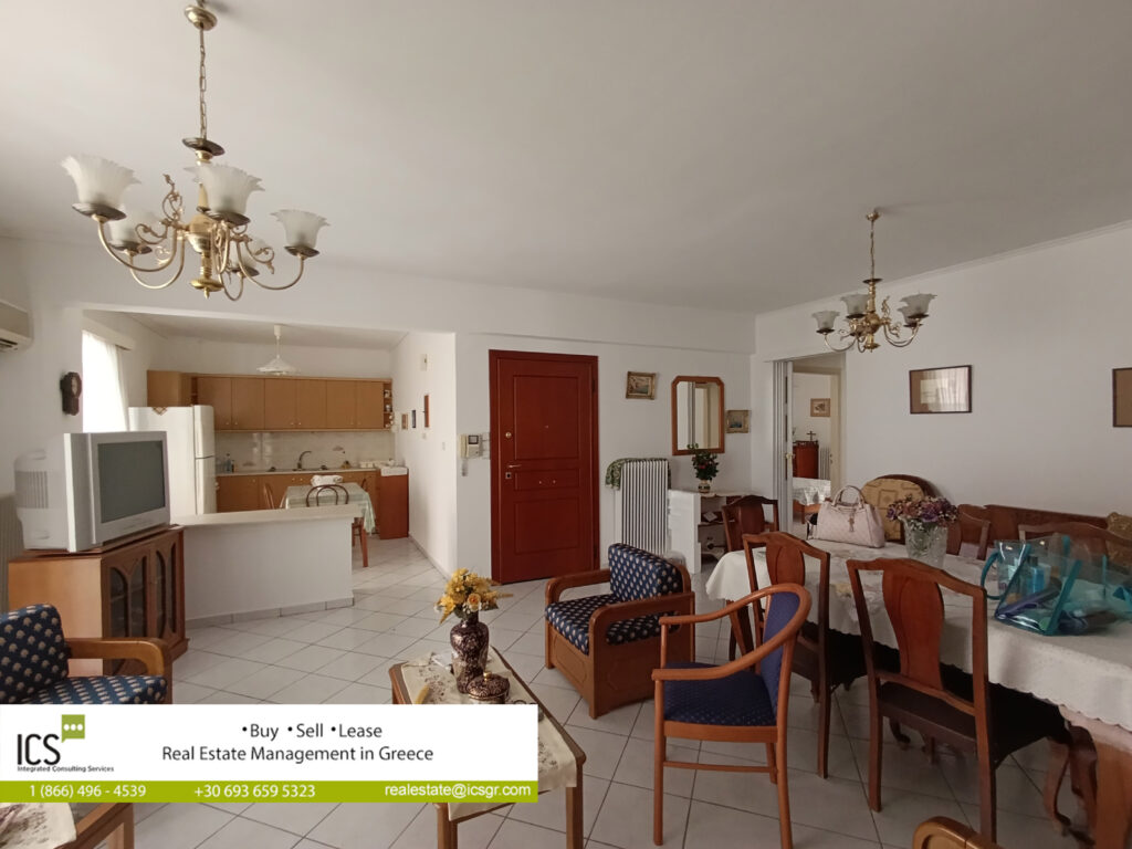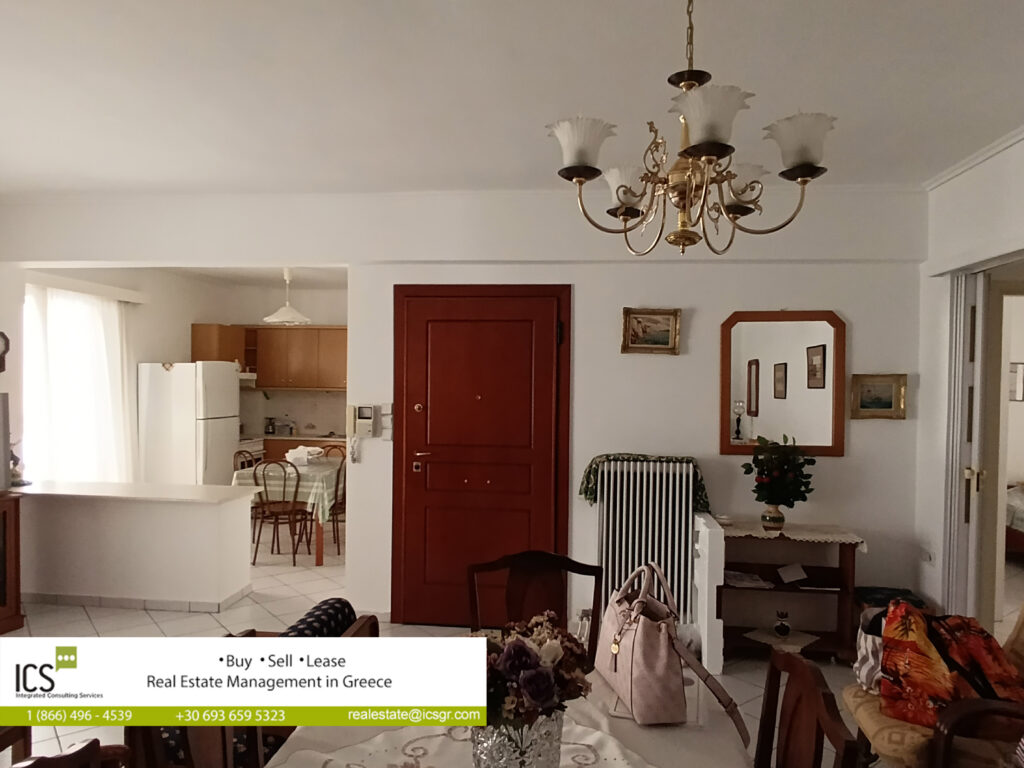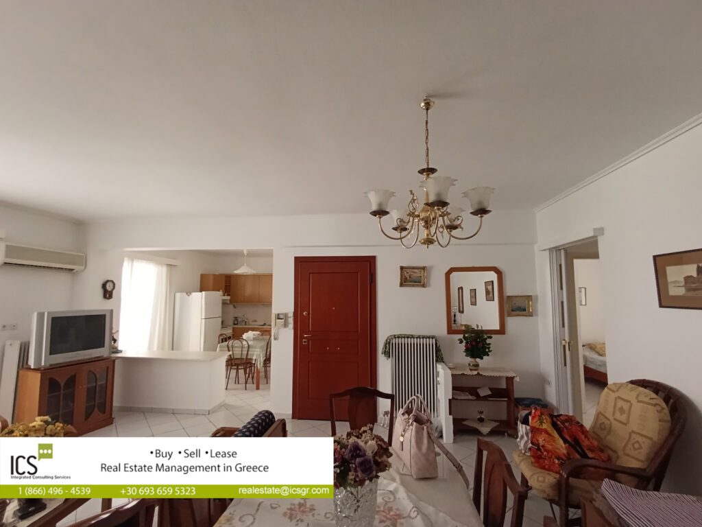 The property is in very good condition, bright, frontage, airy, with large balconies front and back and consists of a large living-dining room, open plan kitchen, 2 bedrooms and bathroom. It has aluminum frames and shutters, awnings, security door, 3 air condition units, gas central heating, fireplace, intercom. The apartment building is in very good condition, with elevator, and is located in a beautiful and quiet neighborhood, near Alsos Dexameni, Katrakio Theater, football fields, and shops. Nikaia and Korydallos metro stations are about a 6-minute drive and an 18-minute walk from this property.
