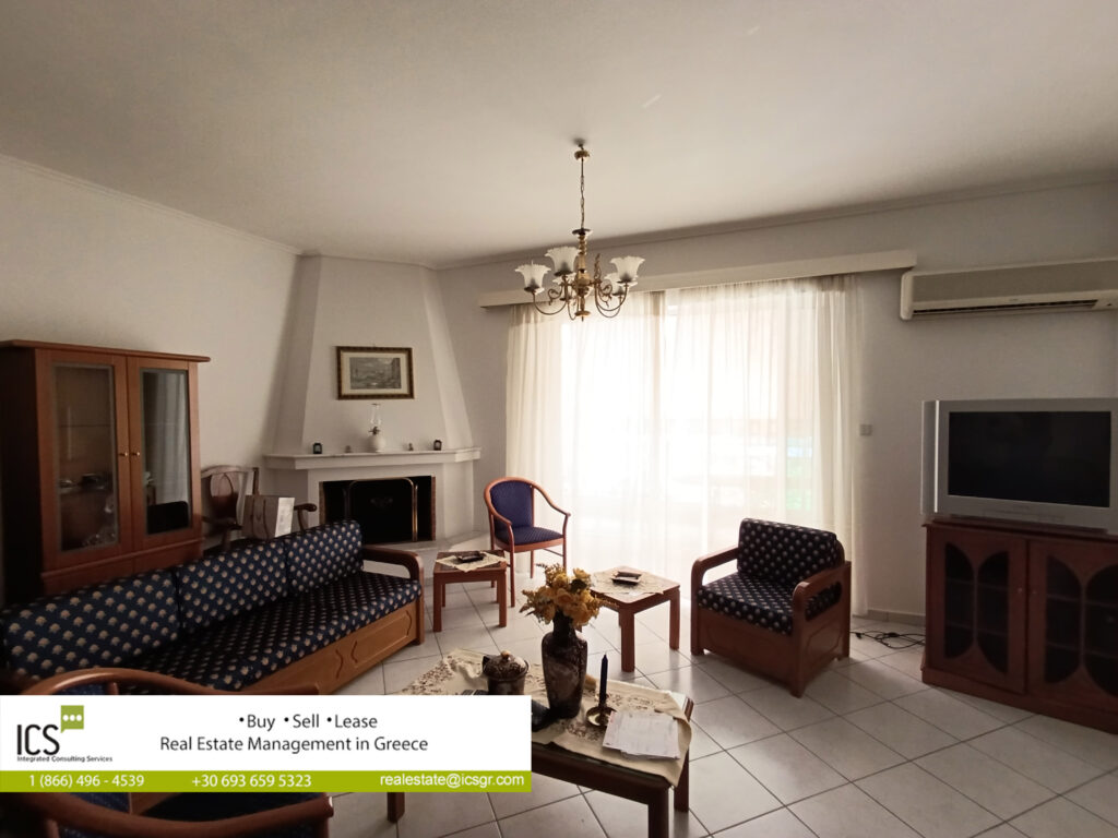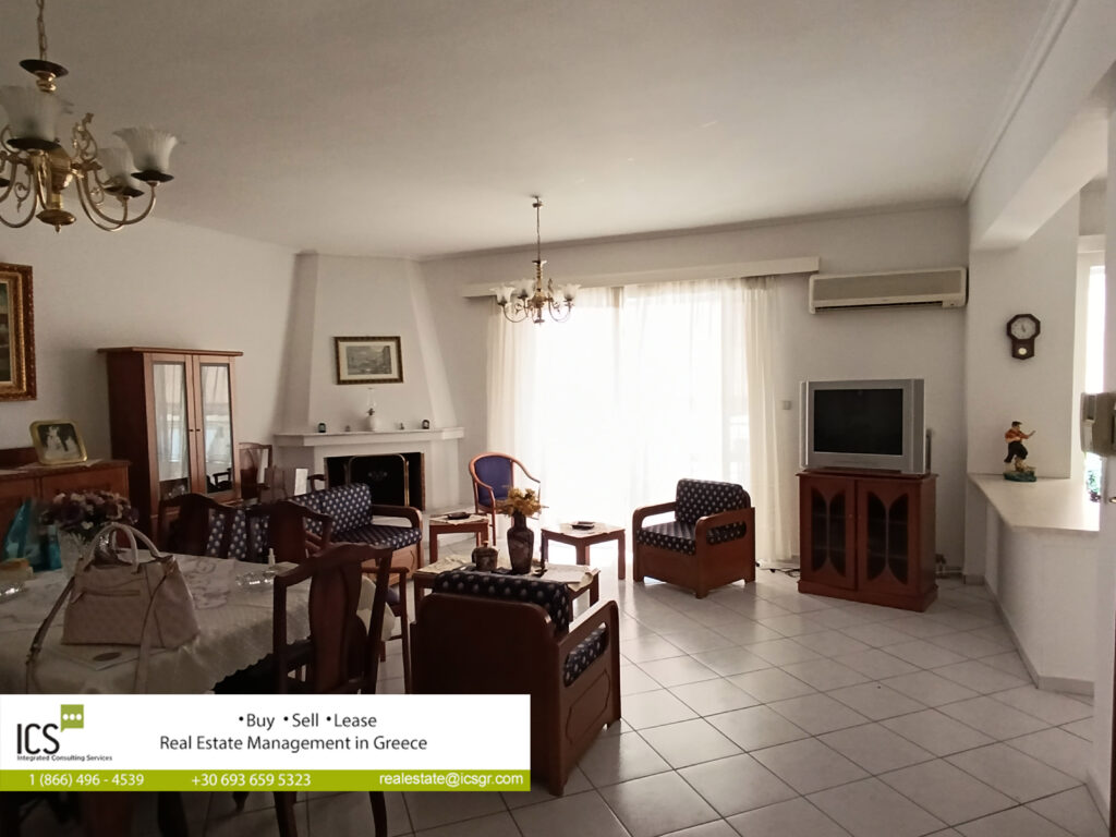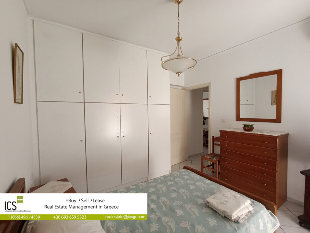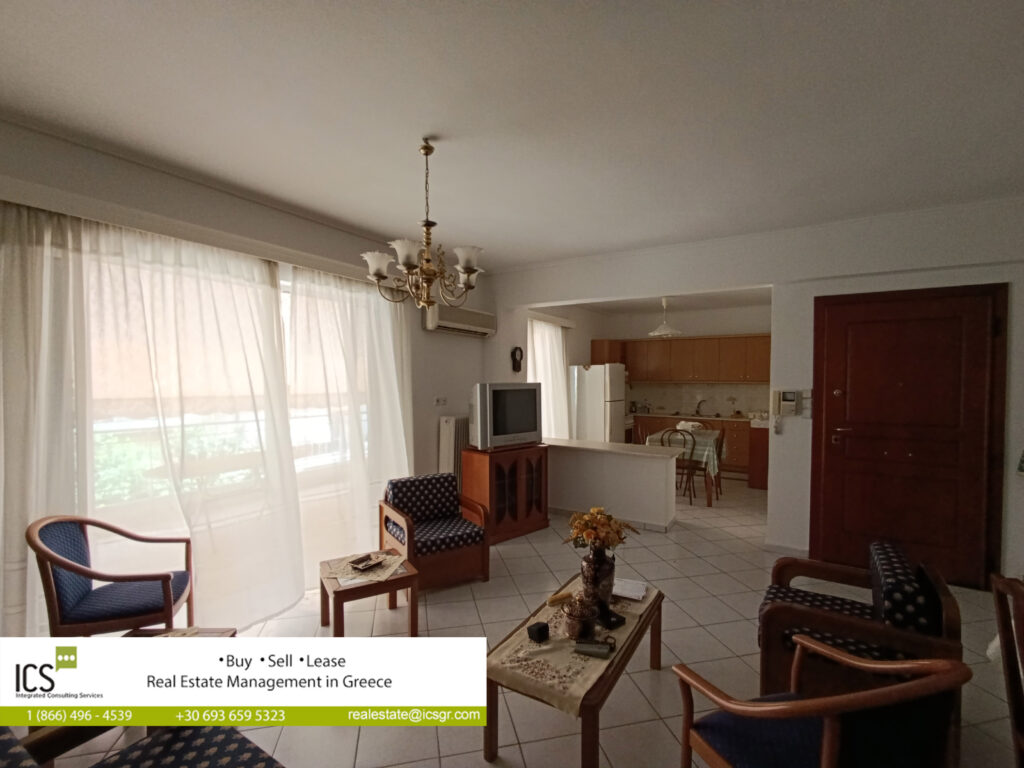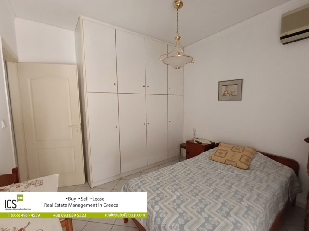 The property is in very good condition, bright, frontage, airy, with large balconies front and back and consists of a large living-dining room, open plan kitchen, 2 bedrooms and bathroom. It has aluminum frames and shutters, awnings, security door, 3 air condition units, gas central heating, fireplace, intercom. The apartment building is in very good condition, with elevator, and is located in a beautiful and quiet neighborhood, near Alsos Dexameni, Katrakio Theater, football fields, and shops. Nikaia and Korydallos metro stations are about a 6-minute drive and an 18-minute walk from this property.